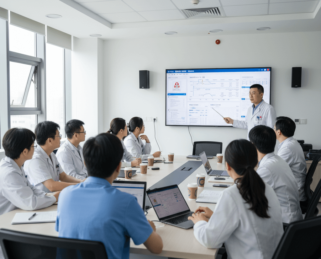 大屏展示让晨会更像一场清晰、有序的病例发布。