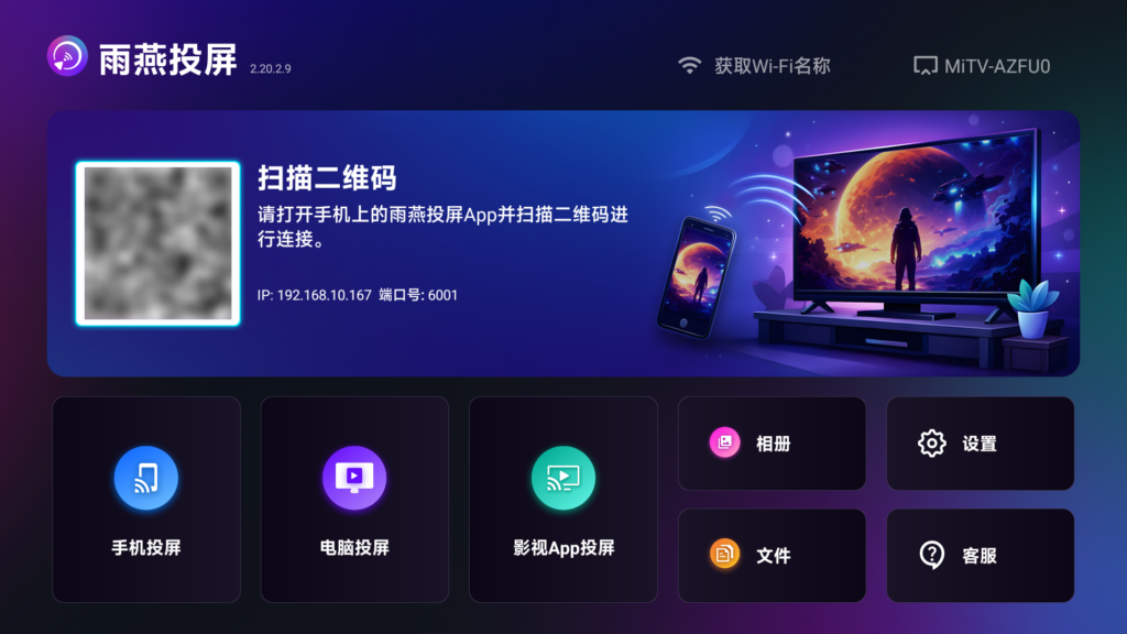 2. 安装并打开雨燕投屏APP