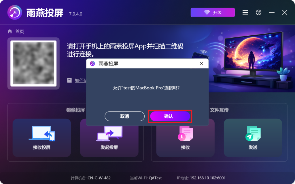 (以 Mac 投屏到 Windows PC 为例,Mac同样操作)
