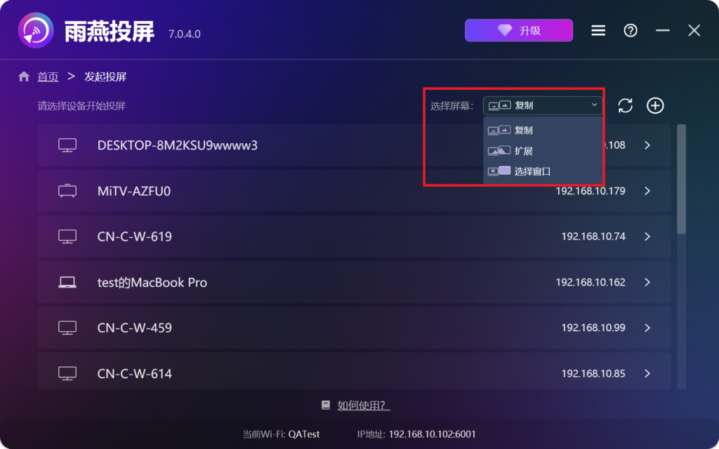 你可以根据需要选择投屏模式: