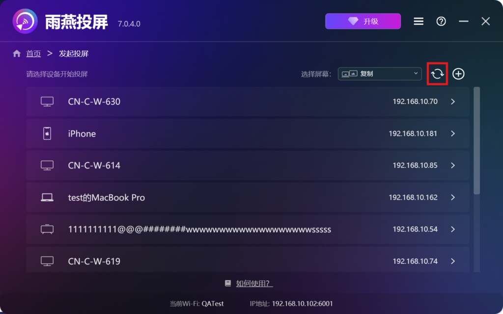 雨燕投屏会自动扫描并显示同一局域网中所有支持投屏的设备,比如智能电视、电视盒子或其他电脑。