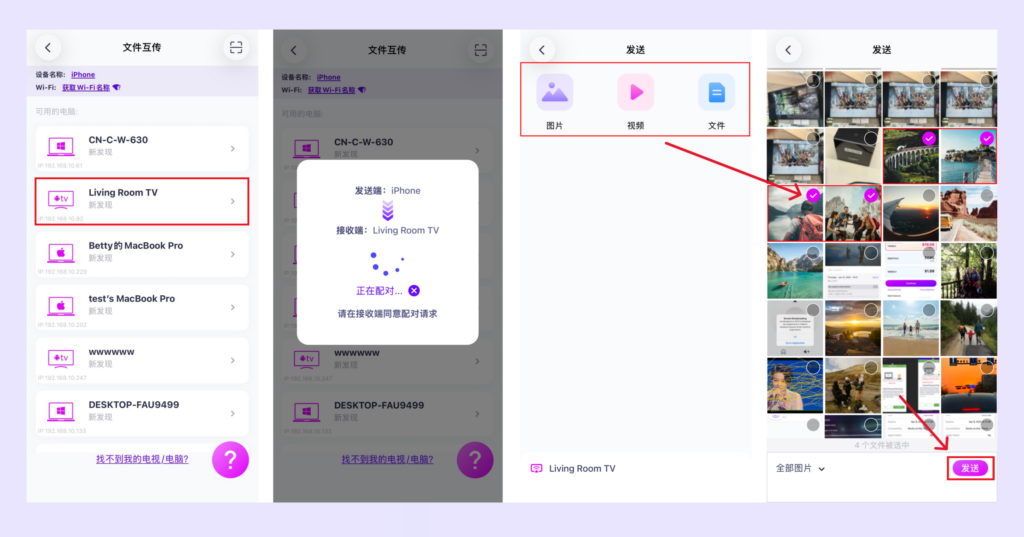 第三步:选择电视并发送文件