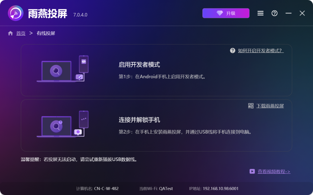 给大家介绍一下如何使用雨燕投屏新功能——有线投屏