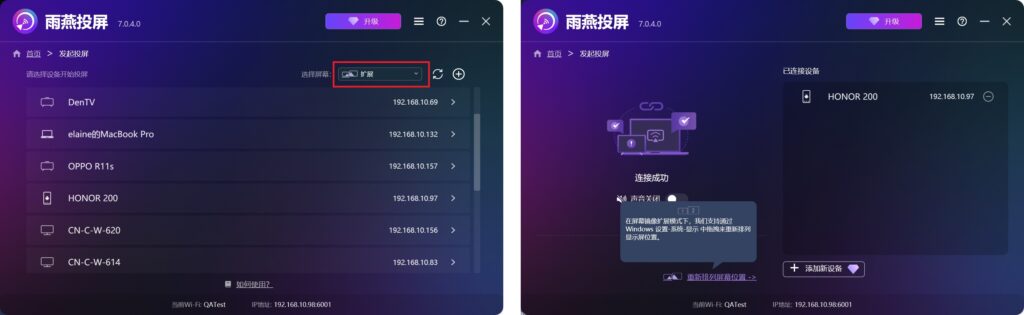 扩展投屏:将电脑屏幕扩展到手机或平板,实现多屏协作。