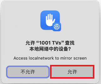 如果 iPhone 出现相关提醒,请确保已开启 1001 TVs 的“本地网络”权限: