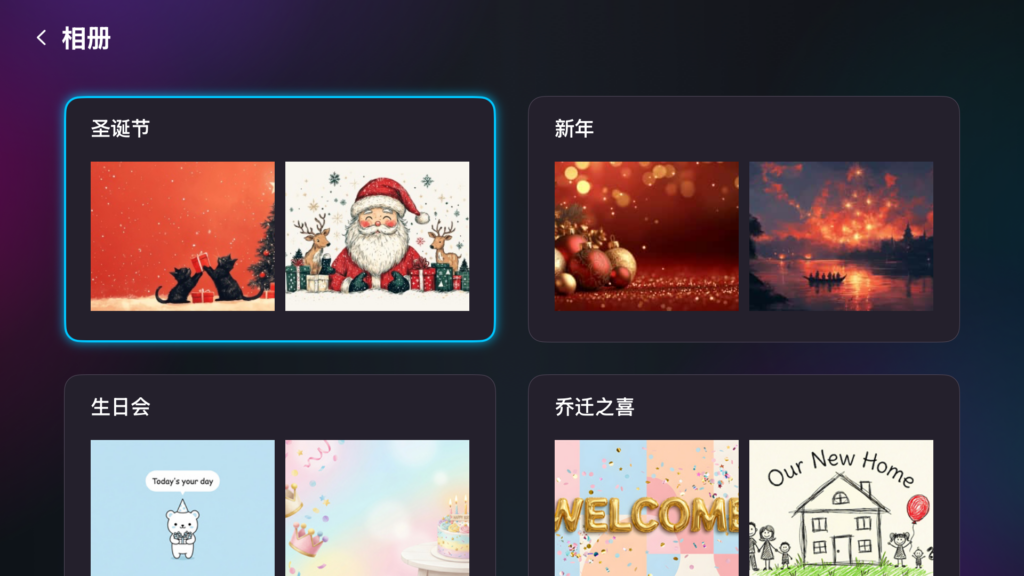 通过雨燕投屏提供的免费圣诞壁纸和主题模板,只需几分钟,就能把 Apple TV 变成温馨、有节日感的展示屏。