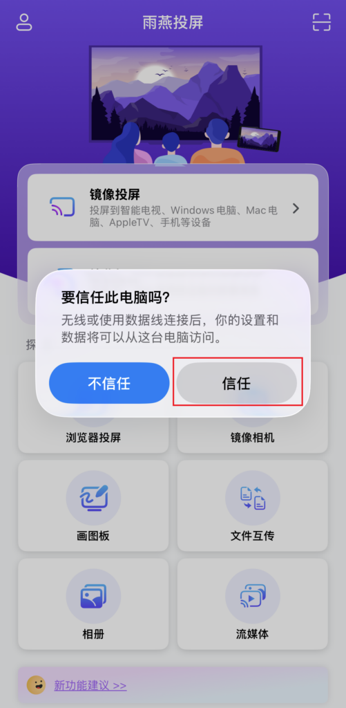 如果出现权限弹窗,请选择“允许”,以确保功能正常使用。