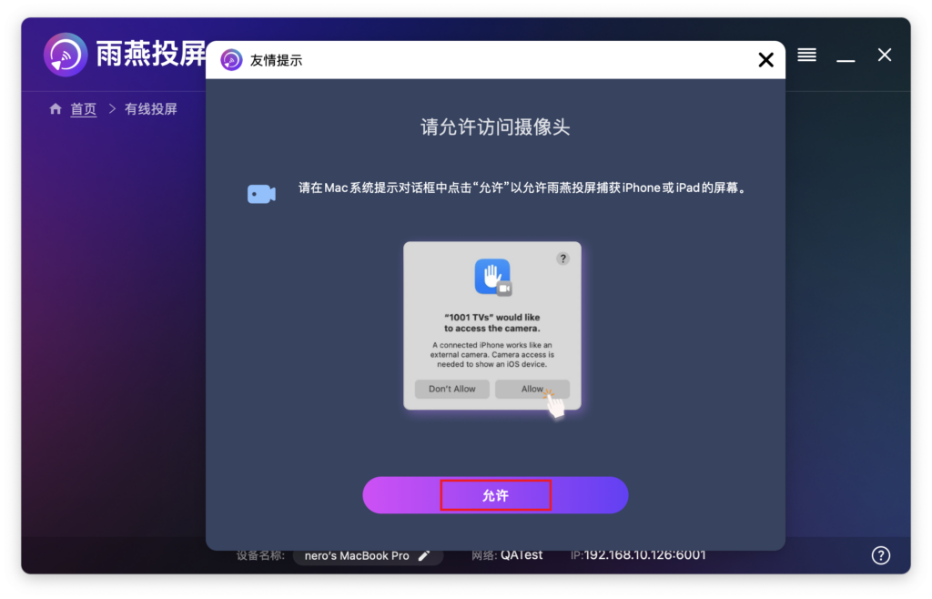 iOS端有线投屏上线啦!只需用数据线连接设备和Mac电脑就可以直接投屏到电脑上!
