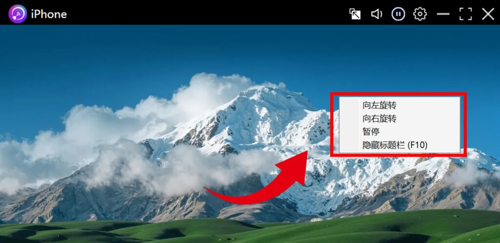 在投屏窗口空白区域右键点击,可使用以下功能: