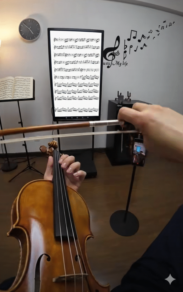 想象一个典型的练琴场景:在练习小提琴时,你正沉浸在一首优美的曲子中,却不得不为了翻动下一页乐谱而中断演奏;或者,你正努力从平板或手机那狭小的屏幕上辨认密密麻麻的音符,眼睛疲劳,还时常看错,极大地影响了练习的流畅性和心情。