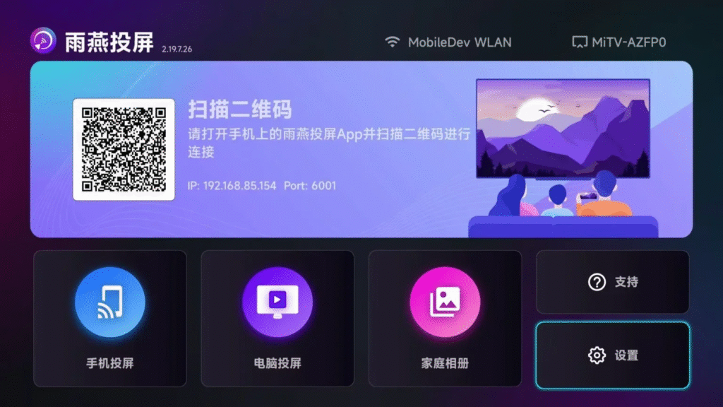 3. 确保您的手机和电视都已安装“雨燕投屏”App,并连接到同一个Wi-Fi网络。