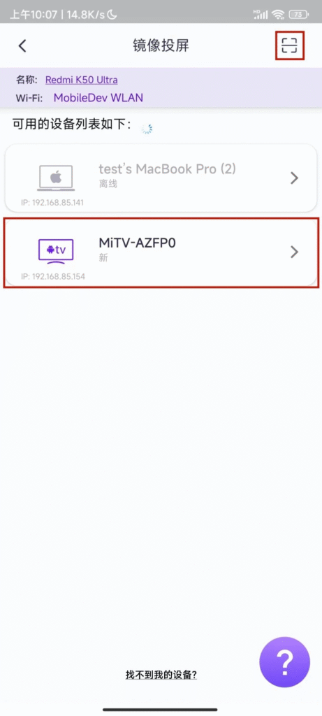 您可以通过选择设备或扫描电视上的二维码来发起连接。