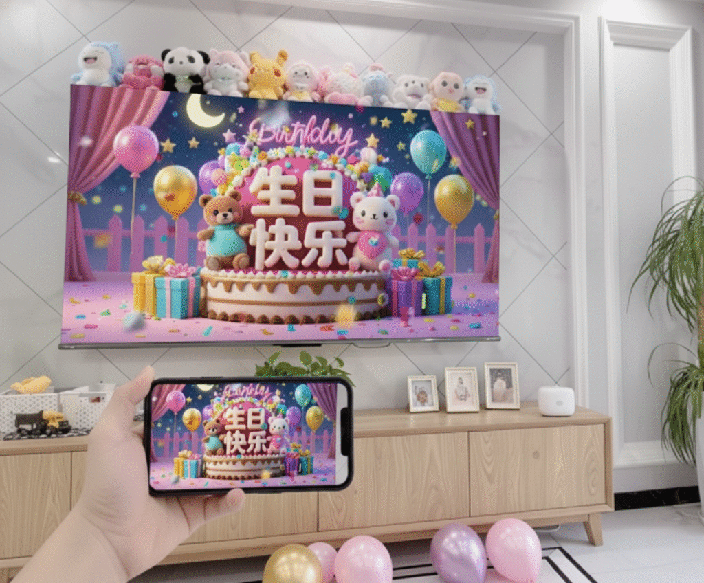 无论是节日布置、家庭聚会、生日纪念,还是日常心情展示,都可以通过投屏轻松完成,让客厅瞬间变得更有故事感。